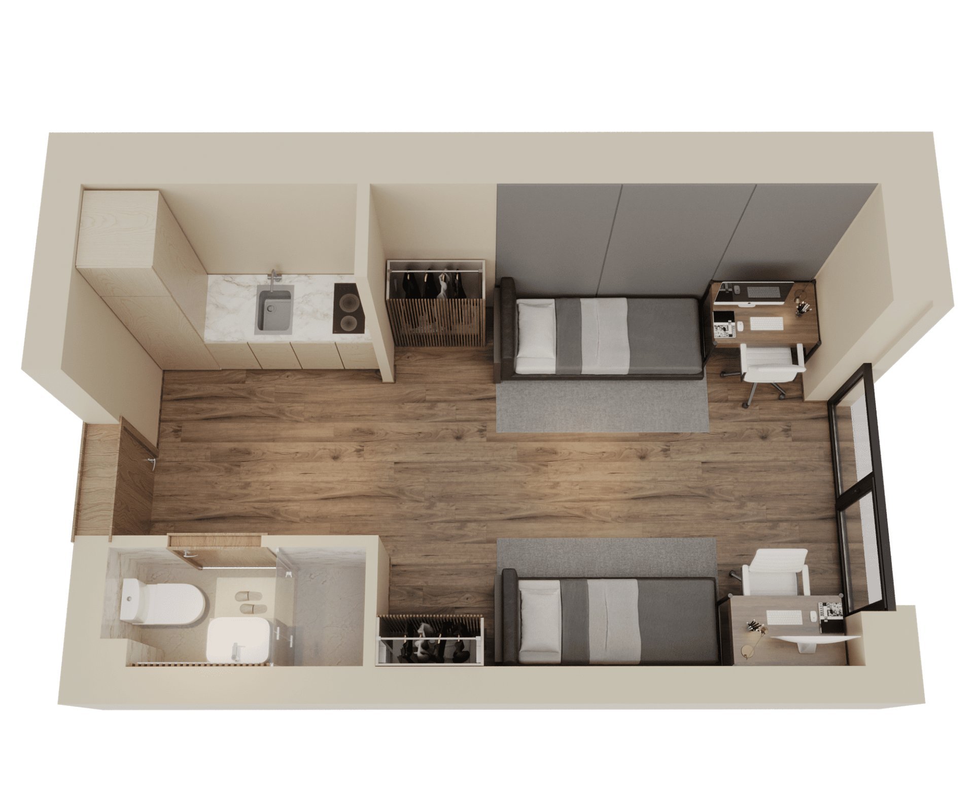 Dzīvojamā telpa ar virtuvi